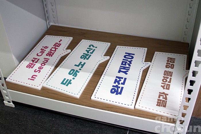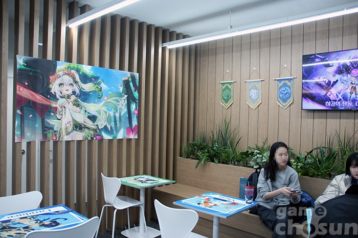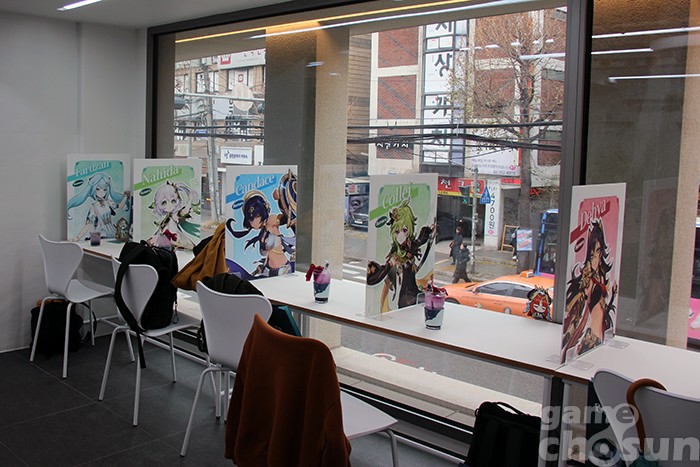 2층과 3층 카페존 창가는 캐릭터 일러스트로 꾸며진 가림막으로 개인석이 마련됐다 = 게임조선 촬영