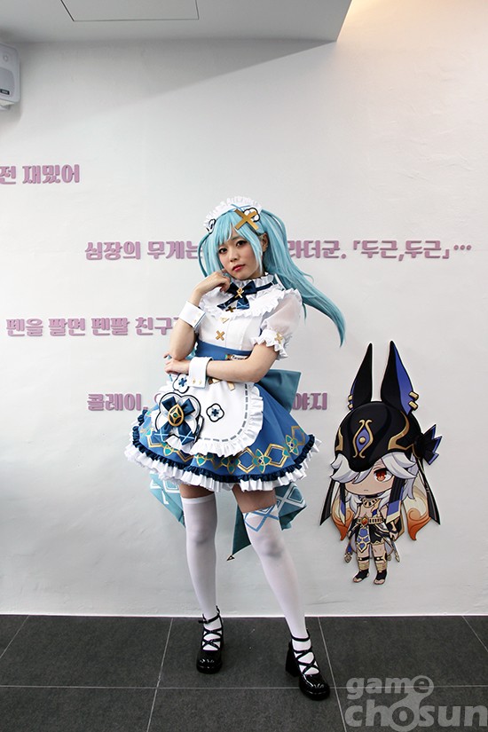 행자들을 반겨주는 나히다 마망 = 게임조선 촬영