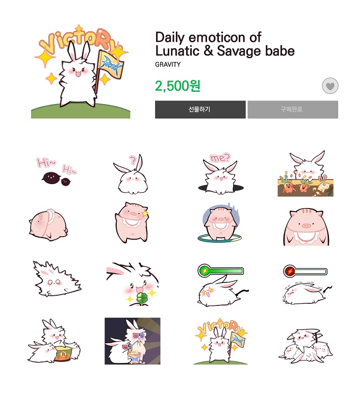[자료제공 = 그라비티] 그라비티가 LINE 메신저용 이모티콘 ‘루나베베콘(Daily emotion of Lunatic & Savage babe)’을 30일 출시했다.