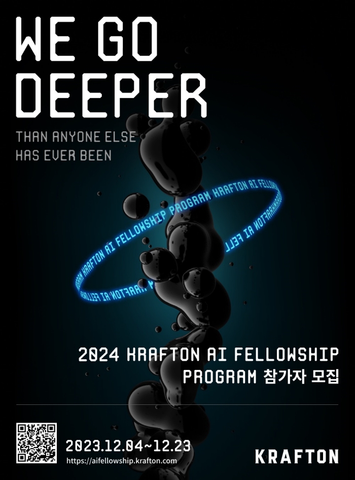 [자료제공 = 크래프톤] 크래프톤(대표 김창한)이 인공지능 인재 양성 프로그램 ‘크래프톤 AI 펠로우십(KRAFTON AI Fellowship Program)’ 2기를 모집한다.