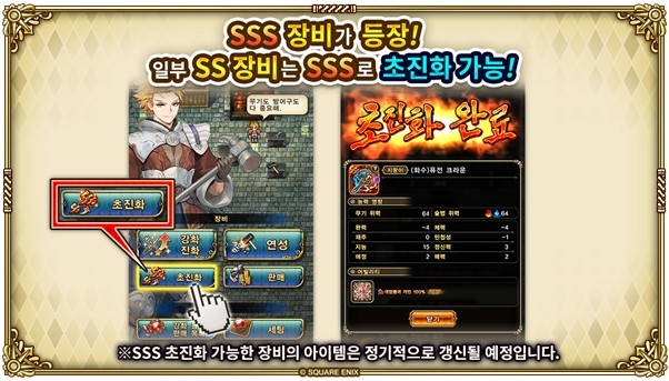 한 단계 진화가 가능한 SS 무기와 SS 연성 무기도 새롭게 확장됐다. 새로운 진화 소재를 사용함으로써 일부 SS 무기를 보다 강한 성능을 지닌 SS 무기로 진화할 수 있으며, SS 연성 무기도 오픈되면서 파티 전투력을 한층 향상시킬 수 있게 됐다. 추가로 3.5주년 기념 초감사 로그인 보너스 기간 중 첫 로그인만 하더라도 SSS 무기 ‘푸른검’도 무료로 지급받을 수 있다.