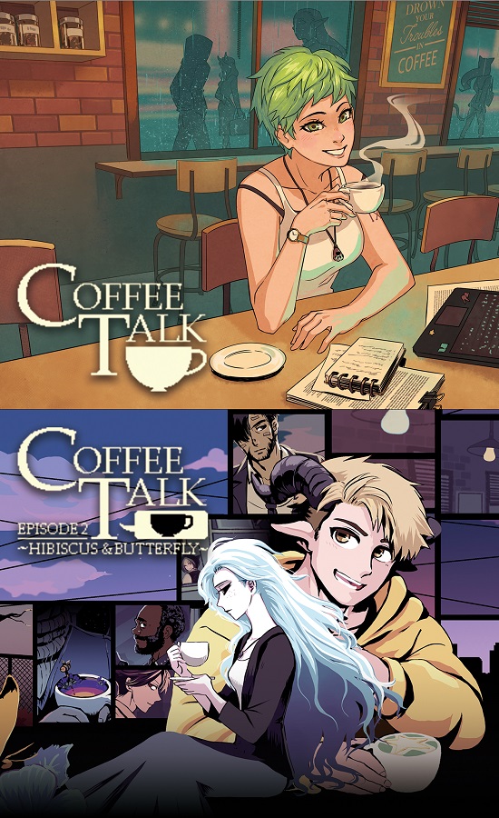 『커피 톡 1 & 2 더블 팩』은 『Coffee Talk』(커피 톡)과 『Coffee Talk Episode 2: Hibiscus & Butterfly』 (커피 톡 에피소드 2: 히비스커스 & 버터플라이)를 함께 즐길 수 있는 합본 패키지 제품이다. 『Coffee Talk』과 『Coffee Talk Episode 2: Hibiscus & Butterfly』는 커피를 만들며 손님과 이야기를 나누는 시뮬레이션 게임으로 플레이어는 판타지 배경의 현대인들의 고민을 듣고, 그들의 마음을 편안하게 해줄 따뜻한 음료를 제공하게 된다. 본 게임 속에서는 평범한 사람과는 다른 캐릭터들이 등장하며, 엘프와 서큐버스의 드라마틱한 사랑 이야기부터 인간을 이해하고자 시도하는 우주인 등 뉴 시애틀에서 살아가는 다양한 이들의 이야기를 들으며 그들과 교류하고 공감할 수 있다.