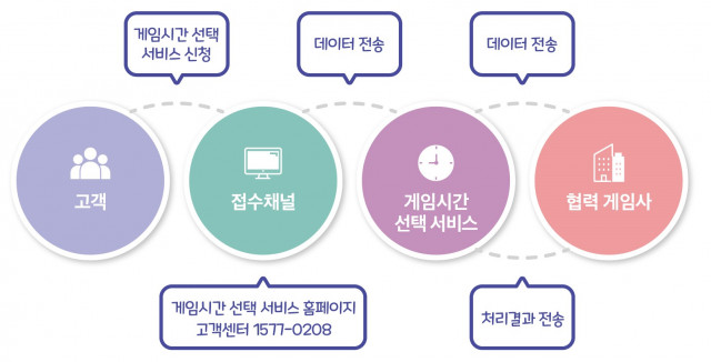 ‘게임시간 선택 서비스’는 게임산업진흥에 관한 법률 제12조의 3(게임과몰입·중독 예방 조치) 등을 근거로 18세 미만 청소년이 스스로 자신의 온라인게임 이용시간을 설정해 제한할 수 있는 ‘게임시간 선택제’를 한 곳에서 한 번에 신청할 수 있도록 지원하는 서비스다.
