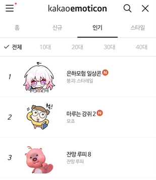 한편, 지난 15일에는 은하모험의 일상을 담은 카카오톡 이모티콘을 선보였으며, 입점과 다음날인 16일, 카카오톡 이모티콘 인기 순위 1위를 달성한 바 있다.