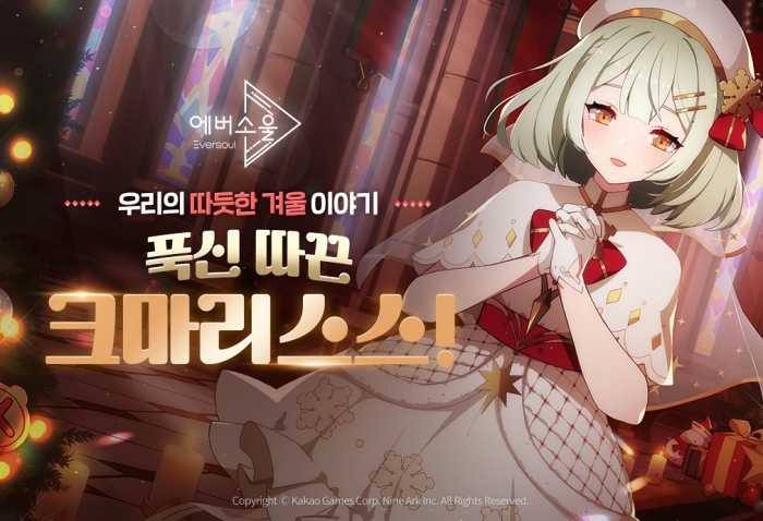 수집형 RPG ‘에버소울’에서는 오는 1월 4일까지 ‘푹신 따끈 크마리스스’ 이벤트를 선보인다. 이용자들은 아름다운 크리스마스 콘셉트의 이벤트 스테이지 ‘눈싸움은 즐거워’와 레이드 ‘크마리스스 대소동’을 플레이하고, 이벤트 재화를 획득해 다양한 성장 아이템으로 교환할 수 있다. 또, ‘캐서린’, ‘도라’, ‘가넷’의 크리스마스 코스튬을 비롯한 풍성한 이벤트 보상을 만나볼 수 있다.