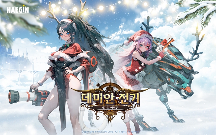 ‘데미안 전기’는 업데이트와 함께 게임에 접속한 누구나 신규 영웅 ‘세라핌’을 만나 볼 수 있는 이벤트가 펼쳐지며, 다가오는 크리스마스를 맞이해 아이리스, 샤론의 신규 스킨을 선보이고 오는 24일부터 1월 2일까지 총 80매의 일반 모집권과 UR 등급 영웅, 신화 장비 등 매일 풍성한 선물을 제공하는 출석 이벤트를 진행한다.