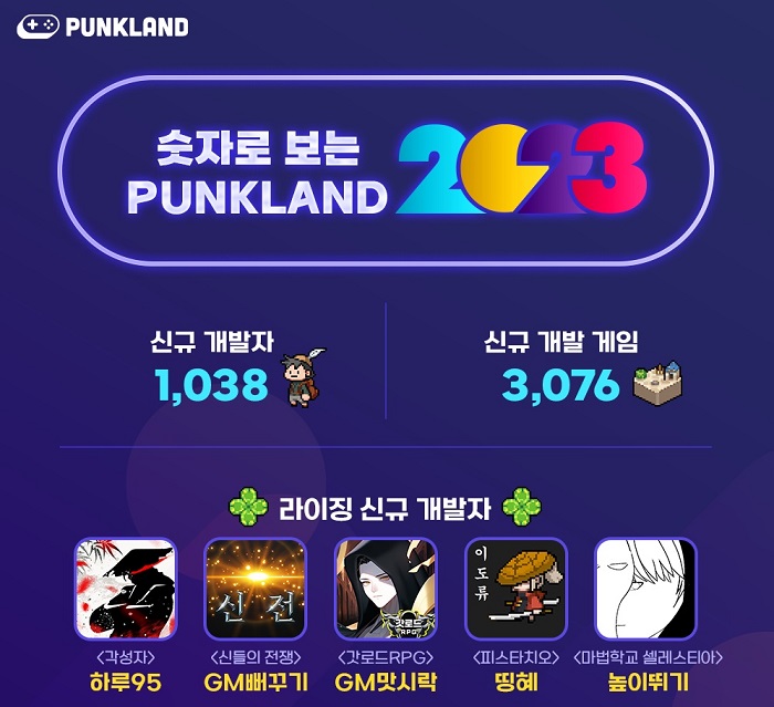 하영민 펑크랜드 팀 리더는 “게임 개발자와 이용자가 함께 즐기는 플랫폼이자 종합 인디 게임 커뮤니티, 인디 게이머들의 놀이터로 성장할 수 있도록 노력한 결과 좋은 결실을 볼 수 있었다”라며 “다가오는 2024년에도 플랫폼 내 게임 개발자와 이용자가 원하는 바를 정확하게 듣고 이를 반영해 지속 발전하도록 노력하겠다”라고 전했다.
