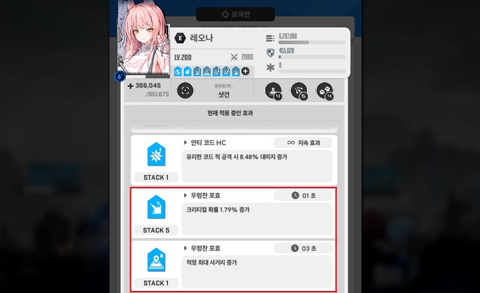 게다가 공격력 증가 버프보다 효율이 현저히 떨어지는 것으로 알려진 크리티컬 확률 및 대미지 증가 옵션을 가진 것도 '레오나'의 기용이 망설여지는 부분이라 할 수 있다.