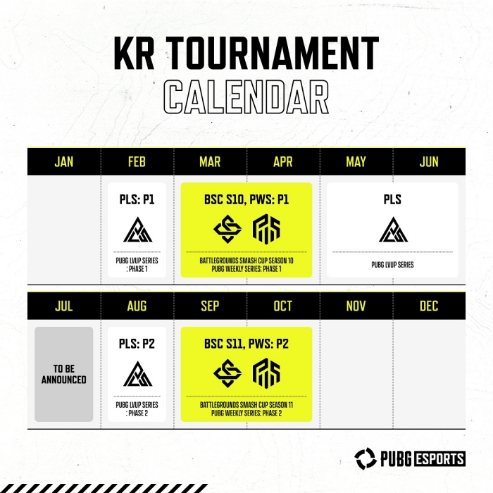 올해 배틀그라운드 이스포츠 국내 대회는 프로 대회인 ‘2024 펍지 위클리 시리즈(2024 PUBG WEEKLY SERIES, 이하 PWS)’와 전초전인 ‘배틀그라운드 스매시 컵(BATTLEGROUNDS SMASH CUP)’이 3월과 9월에 각각 2회씩 진행된다.