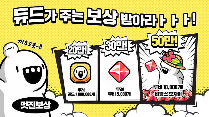 사전예약은 정식 출시 전까지 구글 플레이 스토어와 앱스토어, 원스토어에서 참여가 가능하다. 슈퍼플래닛은 사전예약 50만 달성 시 골드 100만개, 루비 1만 5천 개, ‘바캉스 모자’ 코스튬 등 풍성한 보상을 마련했다고 밝혔다.