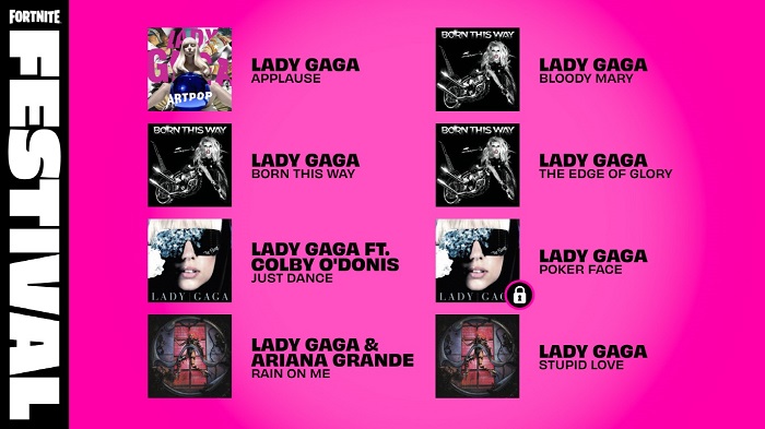 프리미엄 보상 트랙에서는 레이디 가가와 관련된 보상을 제공하며, 최종 보상으로는 유명 디자이너 낸지 마그로(Nange Magro)가 디자인한 보라색 보디슈트 ‘이니그마틱 가가’ 의상을 얻을 수 있다. 신규 잼 트랙으로는 레이디 가가의 'Poker Face'와 각각 넬리, 사운드가든, 토픽의 'Ride Wit Me', 'Black Hole Sun', 'Breaking Me' 등의 곡이 수록된다. 이 외에도 상점에서는 유명 디자이너 세실리오 카스트릴로(Cecilio Castrillo)의 검정 가죽 보디슈트 ‘크로마티카 아머’ 의상과 ‘크로마티카’ 베이스와 마이크, ‘Stupid Love’ 잼 트랙, ‘레인 체크’ 이모트 등의 다양한 아이템을 만나볼 수 있다.