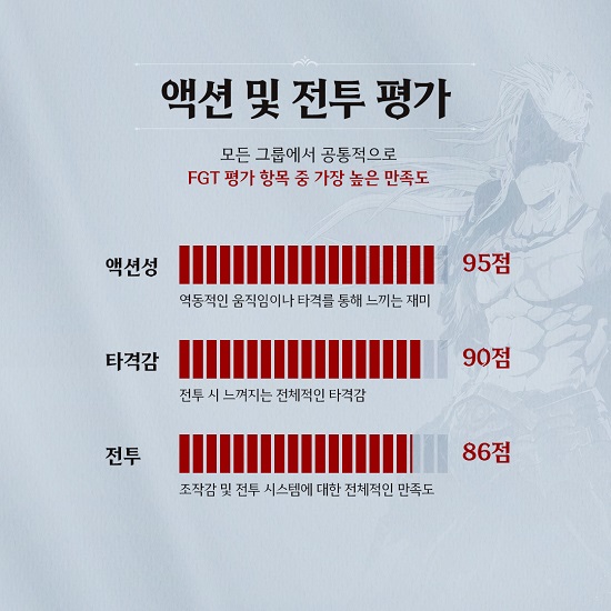 FGT 평가 항목 중 가장 높은 만족도 보인 ‘액션 및 전투 평가’