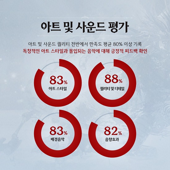 ‘더 게임 어워드’ 트레일러에서 뜨거운 관심을 받았던 ‘카잔’만의 3D 셀 애니메이션풍 그래픽도 참가자들 사이에서 재차 화제가 됐다. 아트 스타일, 퀄리티 및 디테일, 배경음악, 음향 효과의 만족도를 묻는 항목에서 전부 80% 이상의 수치를 기록하며 독창적인 그래픽에 대한 긍정적인 반응을 확인할 수 있었다.