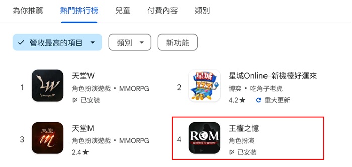 이어 출시 2일 만에 한국 구글 플레이 매출 순위에 19위로 첫 진입한 후 지난 3일 오후에 한국 구글 플레이 매출 순위 3위 및 대만 매출 순위 4위를 기록하며 글로벌 MMORPG 시장에 성공적으로 안착했다.