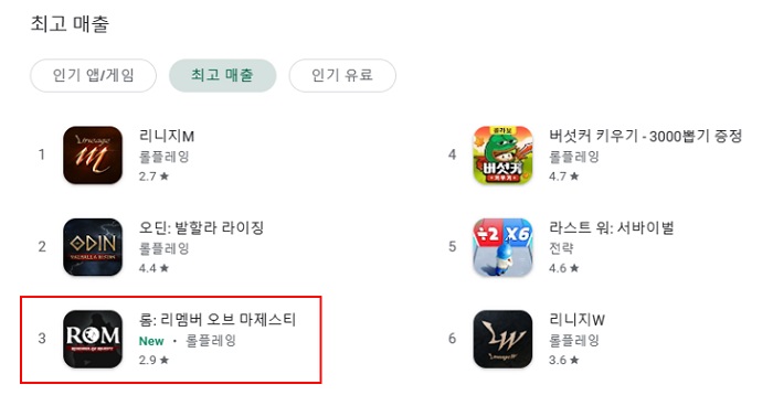 [자료제공 = 레드랩게임즈] 레드랩게임즈(대표 신현근)는 자사가 개발하고 카카오게임즈(대표 조계현)와 함께 글로벌 동시 서비스를 진행하는 신작 하드코어 MMORPG ‘롬(ROM: Remember Of Majesty)(이하 롬)’이 한국, 대만 구글 플레이 매출 순위 최상위권에 진입했다고 밝혔다.