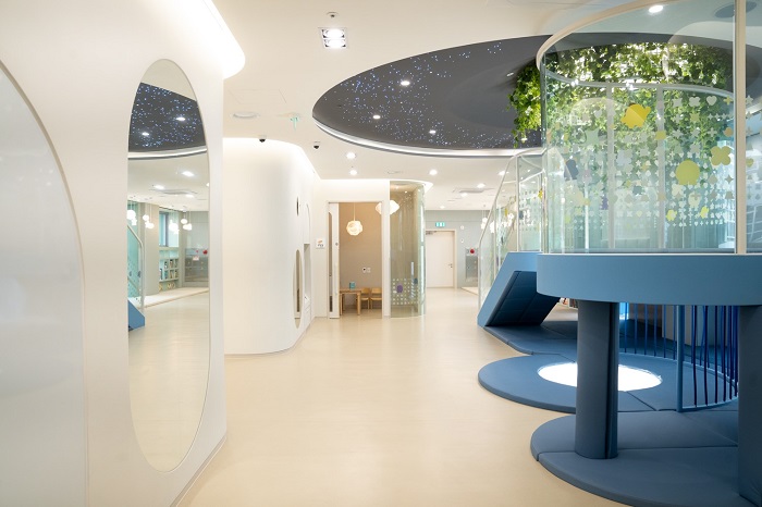 넷마블 푸르니 어린이집은 연면적 약 550평 규모로, 지하 1층부터 지상 4층까지 단독 건물로 조성됐다.