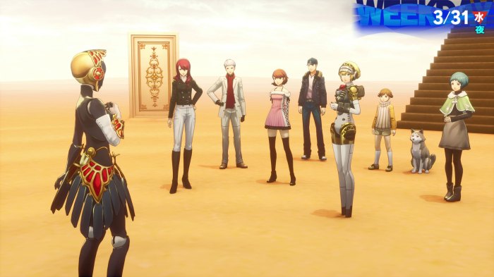 기숙사 폐쇄를 하루 앞둔 3월 31일. 특별과외활동부(S.E.E.S.)의 멤버들은 각기 다른 심정으로 마지막 하루를 보내려던 중이었다. 그러나, 이변은 갑자기 찾아왔다. 수수께끼의 기계 소녀 '메티스'의 습격을 계기로 아이기스는 여러 개의 페르소나를 사용할 수 있는 "와일드"의 힘을 각성한다. 그리고 폐쇄된 기숙사 안에서 3월 31일이 반복되며 '시간이 헛돌고 있다'는 사실이 밝혀진다. 수많은 의문과 진실을 품은 채, 페르소나 구사자들의 새로운 싸움이 시작되려 하는데…….