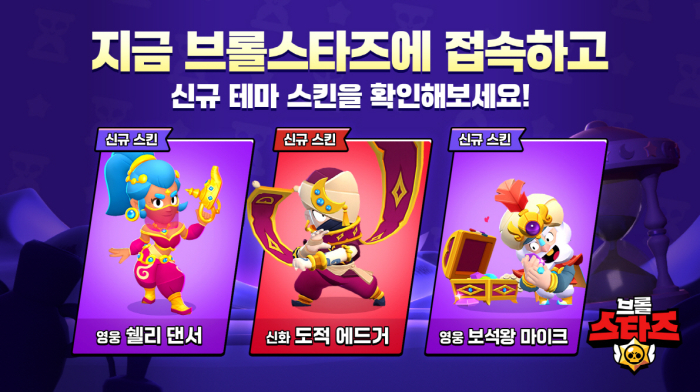 봄 시즌에 걸쳐 다양한 스킨도 업데이트된다. 3월 동안 진행되는 브롤 패스 시즌 ‘시간의 발자취’는 사막 테마로 구성되어 브롤 패스를 통해 얻을 수 있는 ‘쉘리 댄서’와 브롤 패스 플러스에서 획득 가능한 ‘쉘리 댄서 아이리스 & 쉘리 댄서 달리아’를 포함해 7종의 시즌 테마 스킨이 추가된다. 그리고 이번에 진행된 라인프렌즈 콜라보레이션을 기념해 라인프렌즈 미니 테마의 초희귀 스킨 ‘소녀 팬 코니’와 ‘풍선 샐리’, 영웅 스킨 ‘로켓 브라운’도 3월 초 출시되어 상점에서 만나볼 수 있다.