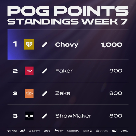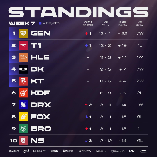 디플러스 기아와 KT 롤스터도 7주 차에서 선전을 펼치면서 플레이오프 티켓을 손에 넣었다.