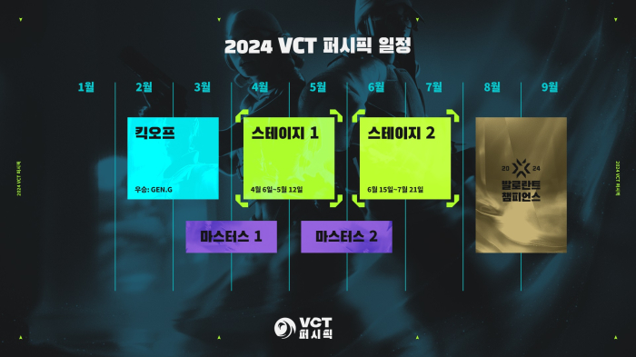 5대5 대전형 캐릭터 기반 전술 슈팅 게임 '발로란트'의 개발 및 유통사인 라이엇 게임즈(한국 대표 조혁진)는 VCT 퍼시픽 2024 스테이지 1과 스테이지 2에 대한 정보를 공개했다.