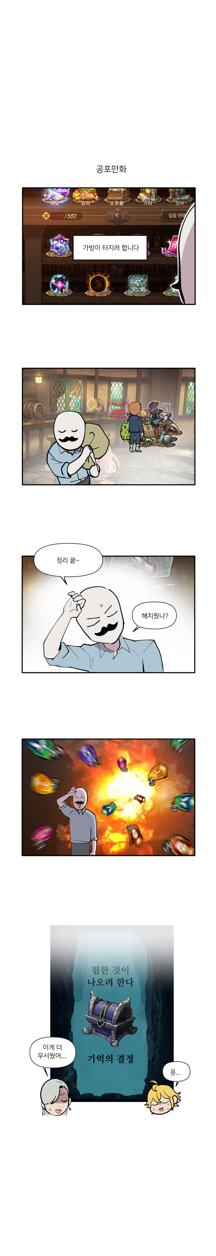 이번 웹툰은 일곱개의대죄에서 인벤토리 용량을 곤란하게 만드는 '기억의 결정'에 대한 내용도 포함돼있다. 기억의 결정은 모든 종족용이 랜덤으로 들어있는데 비해 실제 사용되는 종족은 한정돼 있어 비대칭적으로 모인다는 것이 특징. 버리거나 팔기에도 아까운 아이템이라 많은 게이머들이 종족 변경 시스템이 나오길 기대하고 있다는 점을 재미있게 어필했다.