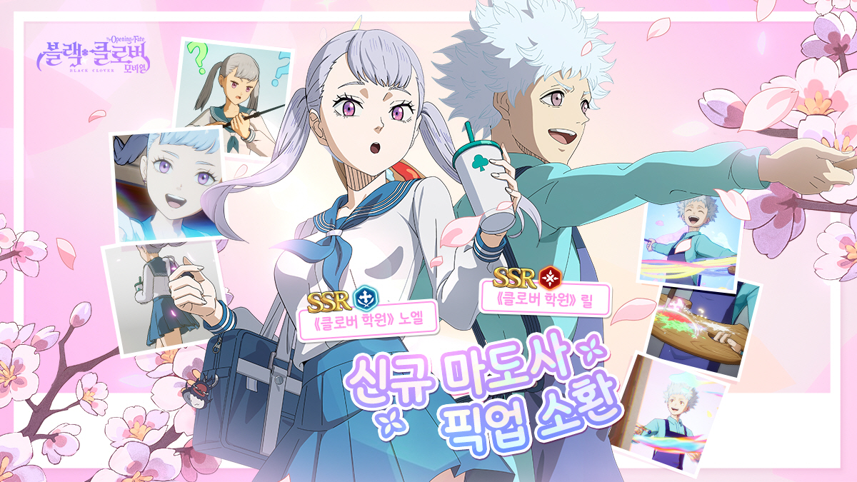 또한 새롭게 등장한 ‘클로버 학원’ 노엘은 필살기 ‘이번에야말로 성공할 테니까!’를 사용하는 마도사로 거대한 물 구체를 만들어 터트릴 시 모든 아군에게 강화 효과를 부여한다.