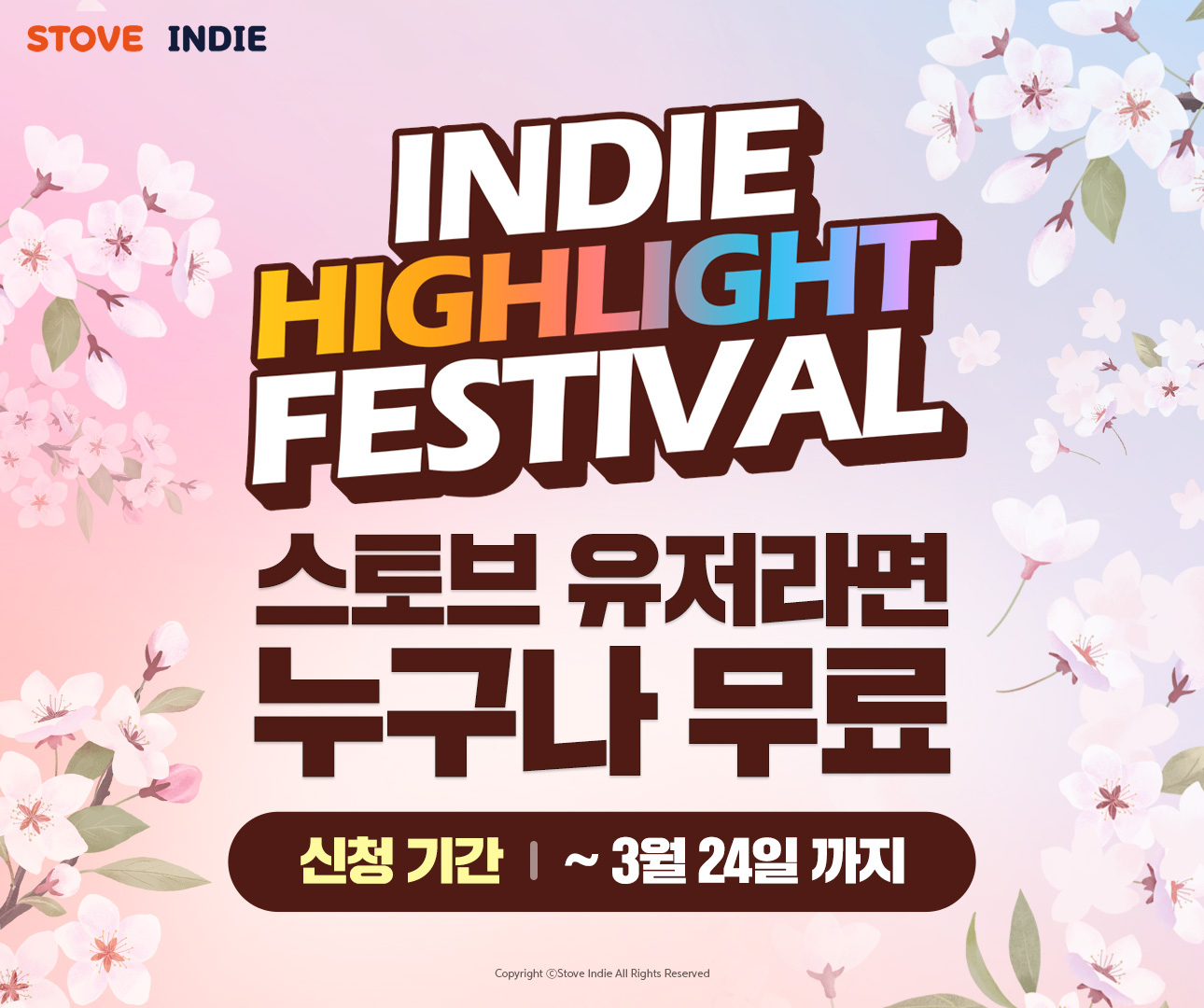 ‘인디 하이라이트 페스티벌’은 완성도 높은 인디 게임들을 조명하고 유저들에게는 더욱 풍성한 게임 경험을 제공하기 위해 기획된 행사다. 스토브 유저면 누구나 사전 등록을 통해 무료로 참여 가능하며 10종 이상의 인디 게임들을 한 달간 플레이할 수 있는 혜택이 제공된다. 스토브는 해당 페스티벌을 4월부터 6월까지 총 3회 진행할 예정이다.