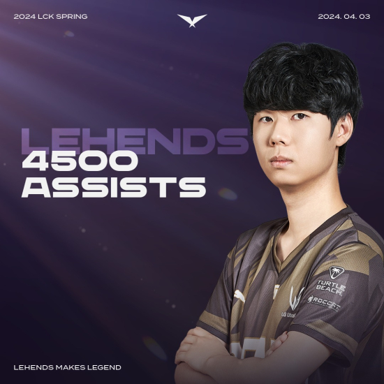 이날 젠지의 서포터 '리헨즈' 손시우는 LCK 통산 두 번째로 4,500 개의 어시스트를 넘어섰다. 2018년 서머에서 정지훈과 함께 데뷔한 손시우는 여러 팀을 옮겨다니긴 했지만 꾸준하게 매 스플릿마다 300개 이상의 어시스트를 기록했고 7년 만에 4,500 개의 어시스트를 만들어내면서 이 부문 2위에 올라섰다.