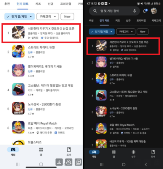 [자료제공 = 위메이드플레이] 위메이드커넥트(대표 이호대)는 인기 웹툰 갓 오브 하이스쿨(이하 갓오하) 인기 캐릭터 4종을 선보인 모바일 방치형게임 ‘서먼헌터 키우기’가 구글 플레이 게임 전체 인기 1위에 올랐다고 8일 밝혔다.