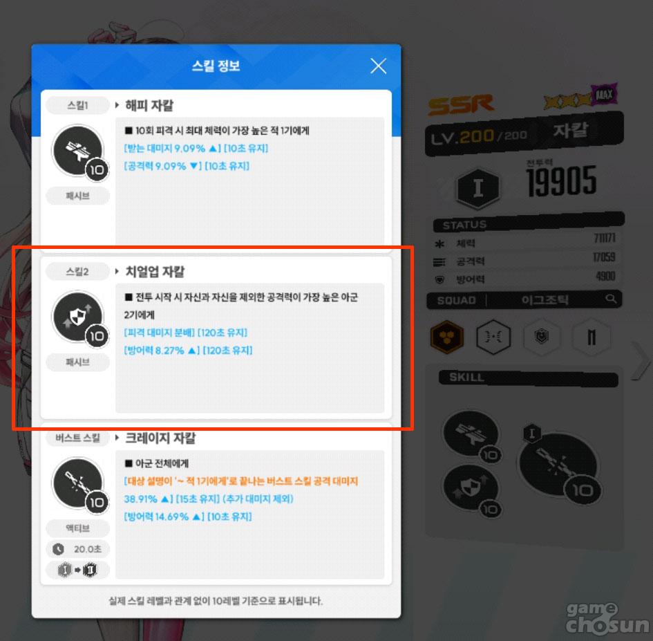 이 '피격 대미지 차등 분배 효과'는 기존에 없던 효과라서 실제 적용 시 어떤 메리트가 있을지 예단할 수 없지만 일단 '차등'이라는 표현이 있는 만큼 기존 비슷한 효과를 가진 '자칼'이 가진 '피격 대미지 분배' 효과와 달리 체력이 낮은 아군을 훨씬 더 효율적으로 보호할 수 있을 것이 기대할 수 있습니다.