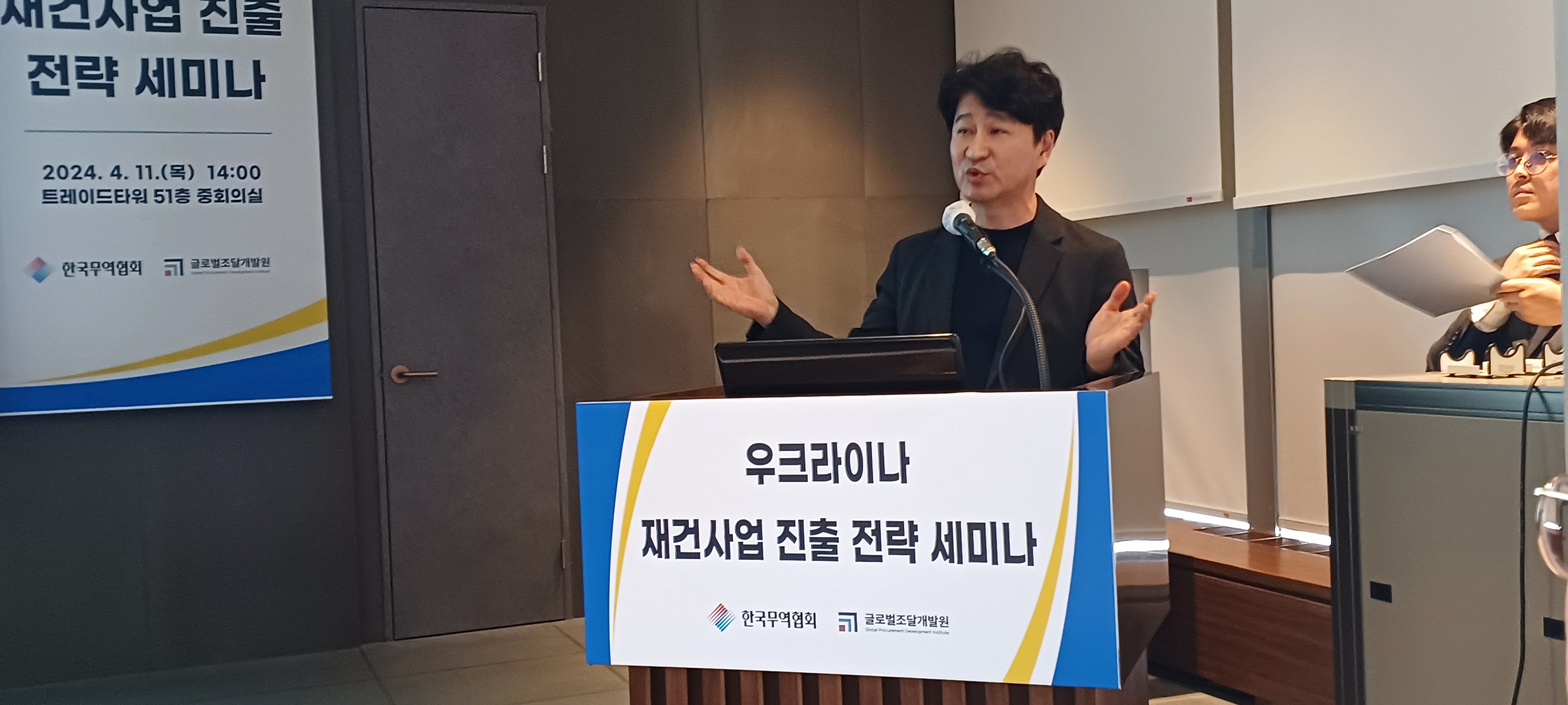 서울 삼성동 트레이드 타워에서 진행된 이번 세미나에서는 김만기 글로벌 조달개발원 원장, 이리나 플레트노바 우크라이나 우만 시장, 도린 로타루 세계보건기구(WHO) 박사, 아이톡시 전봉규 대표 등이 연사로 참여해 우크라이나 재건 수요 현황·사업 참여전략, 지방정부 주도 재건 사업 진행 현황, 우크라이나 현지 진출 사례를 주제로 발표를 진행했다.
