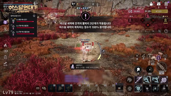 거대한 크기를 가진 만큼 체력도 매우 높은 편이기에 많은 인원이 참여해야만 필드 보스를 공략할 수 있는데, 여기에 또다른 변수가 존재하기에 재미를 더한다. 바로 세력 간 경쟁이다. 아스달 연대기의 필드 보스 콘텐츠는 마지막 타격을 가한 이용자에게 높은 수준의 보상이 제공되는 만큼, 적대 세력이 난입해 막타 기회를 노릴 수 있기 때문이다.