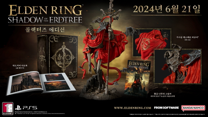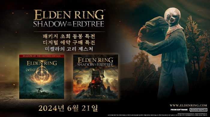 ‘ELDEN RING 황금 나무의 그림자’ 콜렉터즈 에디션과 PlayStation®5용 패키지 'ELDEN RING 황금 나무의 그림자' 에디션, ‘ELDEN RING 황금 나무의 그림자 - 가시공 메스메르의 투구’의 구매에 대한 자세한 정보는 추후 공개될 예정이다.