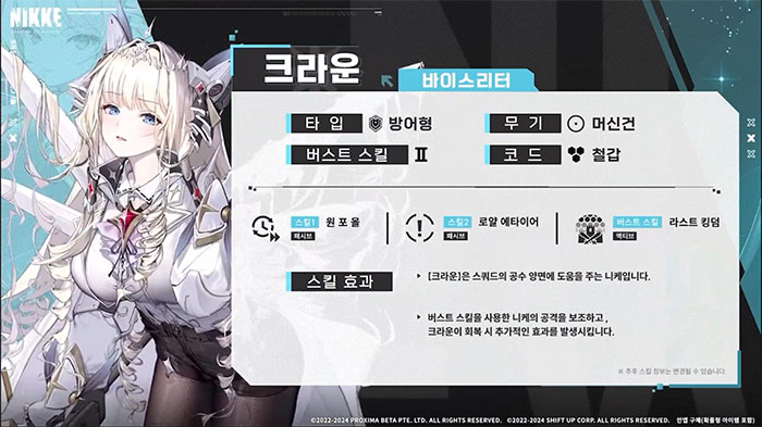 ◆ [니케] 공격력 업! 재장전 업! '무적/도발'의 보호막 방어형 '크라운' 스킬셋 미리보기