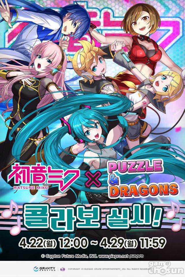겅호 온라인 엔터테인먼트에서 개발하고 모바일 콘텐츠 전문 기업 그라비티 네오싸이언에서 서비스 중인 모바일 퍼즐 액션게임 퍼즐앤드래곤이 하츠네 미쿠와 콜라보레이션 이벤트를 실시한다.