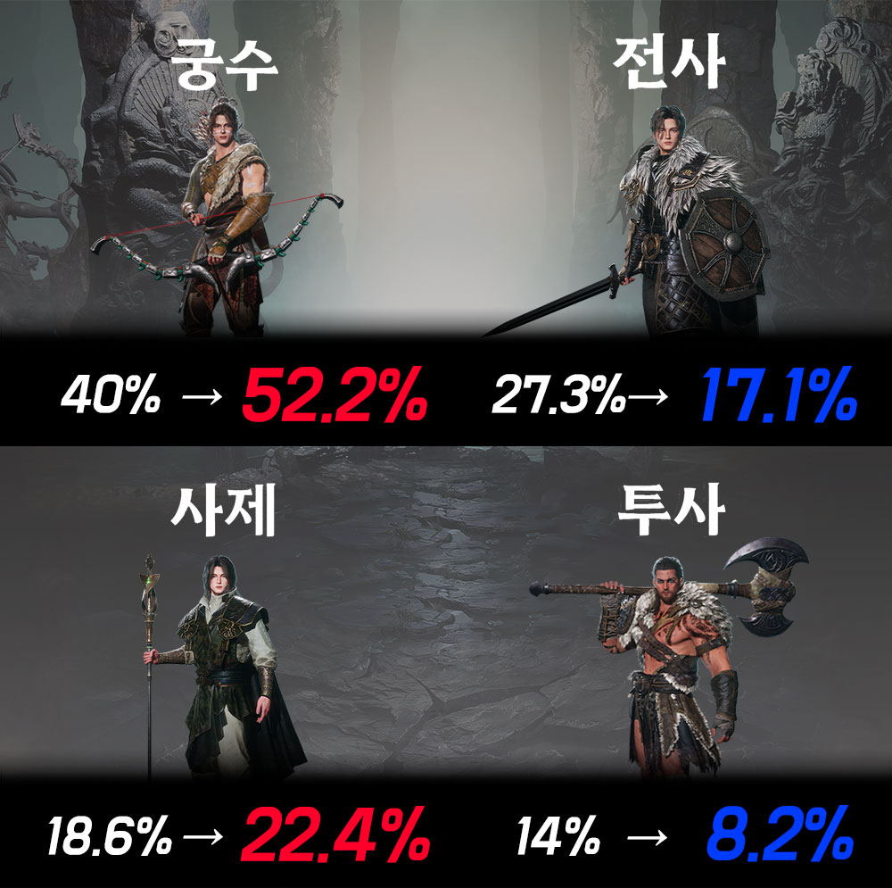 ■ '궁수' 성장세 뚜렷! '사제' 점유율도 상승