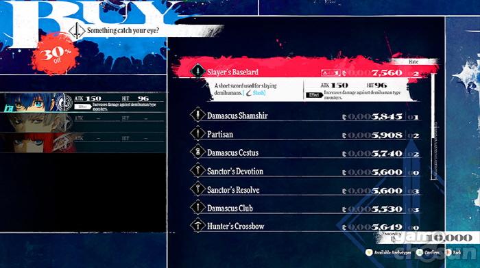 파티의 장비는 던전에서 획득하는 것뿐 아니라 마을의 무기 상점, 방어구 상점에서도 갖출 수 있다. 무기 구매 외에도 던전에서 얻은 미지의 전리품을 감정받을 수 있으므로 위험이 뒤따르는 던전 공략 전후에 반드시 들러야 할 장소다.