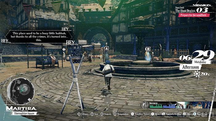 주인공 일행은 각지의 '체류 기간 내에 메인 퀘스트를 공략'해야 하는데, 이때 서브 퀘스트 공략이 중요한 요소로 작용한다. '서브 퀘스트'는 여행 중 만나는 사람들 등으로부터 토벌, 탐색, 조사 등을 의뢰받아 수행할 수 있으며, 달성하면 다양한 보상을 얻을 수 있다. 그중에는 상당한 강적이 기다리고 있거나 희귀한 장비를 손에 넣을 수 있는 의뢰도 있다. 다채로운 서브 퀘스트를 어디서부터 공략해 나갈지는 플레이어가 자유롭게 선택할 수 있다.