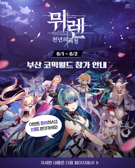 [자료제공 = 그라비티] 글로벌 게임 기업 그라비티가 6월 1일부터 2일까지 부산 벡스코에서 개최하는 ‘124회 부산코믹월드’에 초월적 판타지 애니메이션 RPG ‘뮈렌: 천년의 여정’을 이끌고 참가한다.