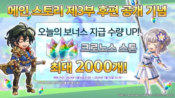 ◆'오늘의 보너스' 지급 수량 증가. 크로노스 스톤 최대 2000개 획득 가능.