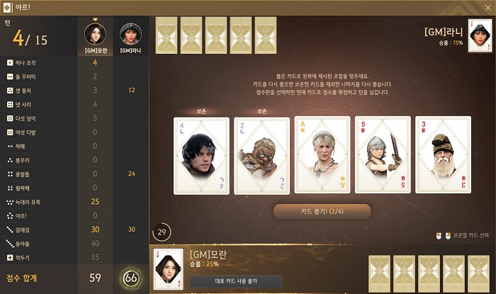 야르는 기본적인 게임 진행 룰만 이해하고 있으면 미니 게임 내 UI를 통해 점수를 확인할 수 있기에 누구나 쉽게 즐기는 것이 가능하다. 또 어떤 낮은 점수를 차곡차곡 쌓아가면서 운영할 지, 혹은 후반부에 높은 점수의 족보 조건을 만족시켜 역전할 것인지 다양한 전략을 구사할 수 있다.