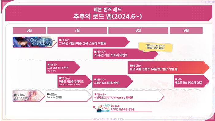 2024년 6월 13일(목) 헤븐 번즈 레드 공식 네이버 라운지에서는 헤번레드 2.5th Anniversary에 앞서 향후 로드 맵이 공개되었다.