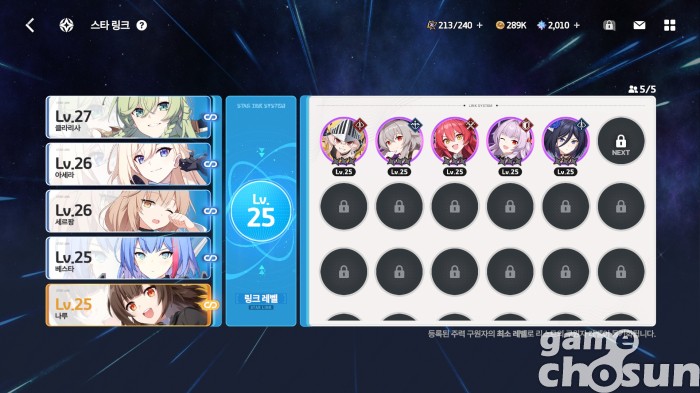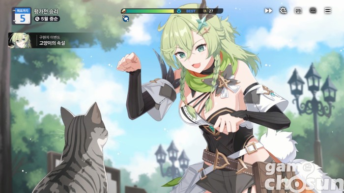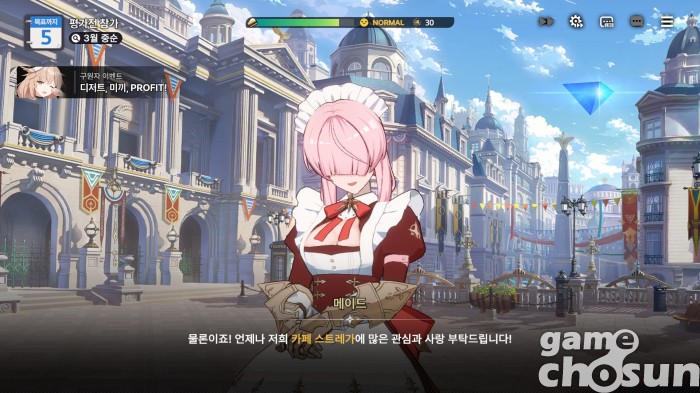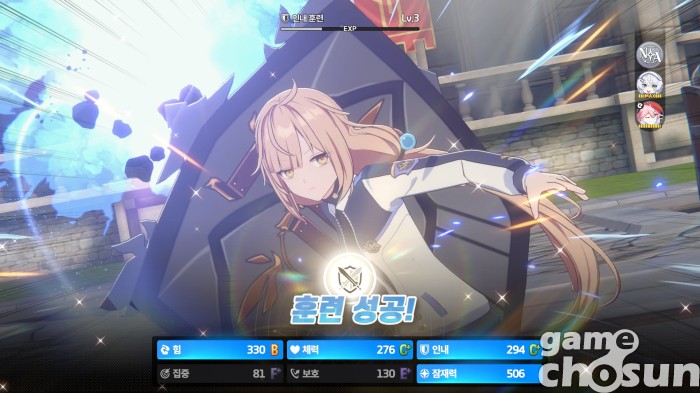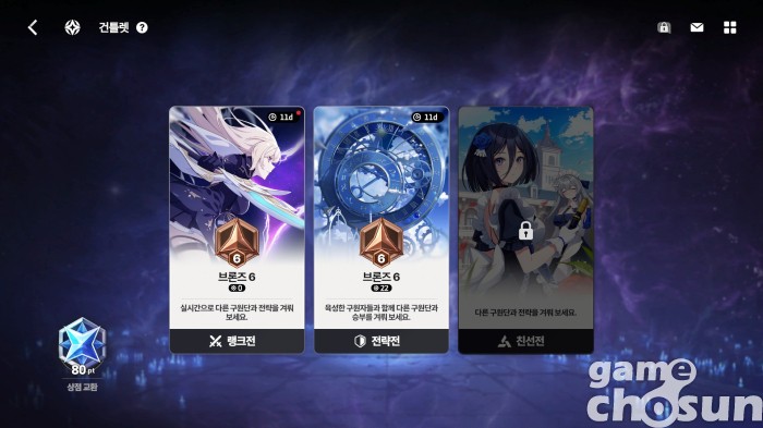 성장과 캐릭터 수집도 꽤 고민을 했다. 캐릭터가 추가되면 추가될수록 성장 난이도와 입수 난이도가 높아지게 된다. 개발진은 이를 레벨 공유와 공통 능력치, 각종 마일리지 재화로 해결했다. 일일 퀘스트를 수행하면 약 3주마다 10% 확률로 SSR 캐릭터를 얻을 수 있고, 주간 퀘스트를 수행하면 약 10주마다 30% 확률로 SSR 캐릭터를 얻을 수 있다. 시간을 투자하면 성장과 캐릭터가 따라오는 것. 물론 픽업 뽑기를 일정 횟수 수행하면 반드시 해당 캐릭터를 얻는 천장도 제공한다.