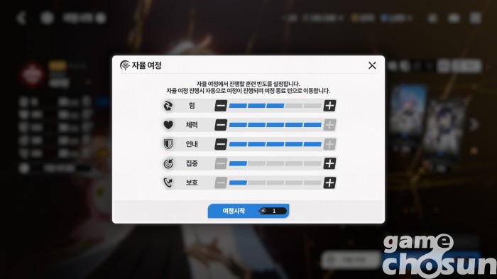 가장 많이 우려했던 여정의 경우 배속 플레이도 길다는 의견이 나오자 CBT에서 여정을 통채로 생략할 수 있는 '자율 여정'을 도입했다. 원하는 훈련의 빈도를 설정하면 할아서 여정을 진행하면서 스텔라 아카이브를 만드는 것. 물론 훈련과 선택지를 직접 골랐을 때와 비교하면 효율이 낮겠지만, 마치 뽑기를 하는 것처럼 원하는 능력치와 스킬이 나올 때까지 '딸깍'하는 행위는 압도적인 편안함과 적당한 도파민을 제공한다.