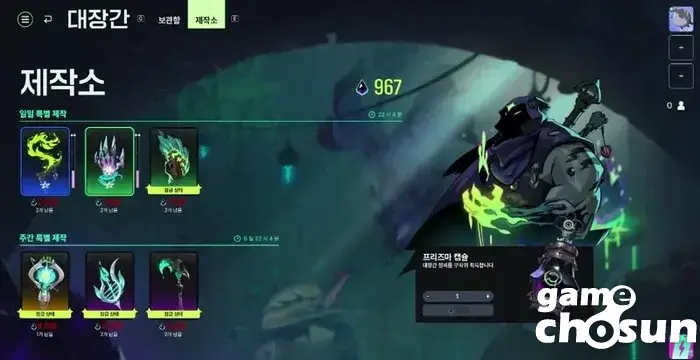 이렇게 치고 받는 싸움의 재미를 극대화했으니 더욱 많은 시간을 투자하여 게임을 반복플레이할 당위성은 바로 자신만의 빌드를 만드는 전장 밖 콘텐츠 '대장간'에서 챙기는 모습을 볼 수 있었다.