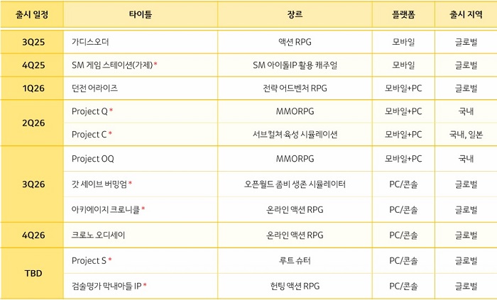 올 하반기 출시를 계획했던 '크로노 오디세이'의 경우, 2026년 4분기로 연기됐다.