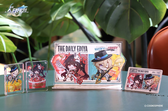 이와 함께 이디야 콜라보 한정판 굿즈도 출시한다. 아크릴 세트는 아크릴 블록 2종, 아크릴 스탠드, 이디야 기프트카드 1만 원권 등으로 구성되며, 이디야멤버스 앱에서 사전예약 후 선택한 매장을 방문해 결제 및 수령할 수 있다.