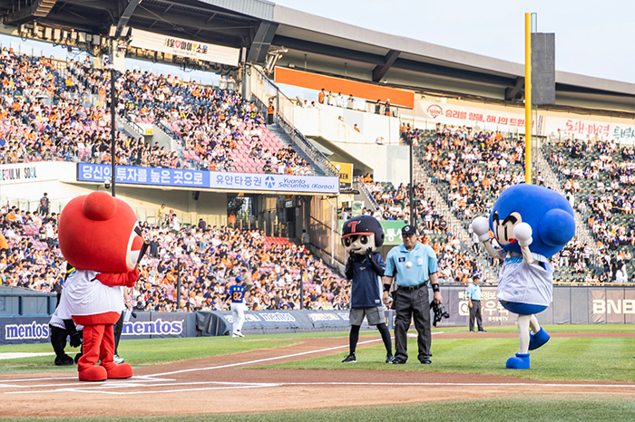 ‘다오’와 ‘배찌’의 깜짝 출현은 경기장 내에서도 이어졌다. 8일 진행된 LG트윈스 홈경기에서는 ‘다오’가 시구, ‘배찌’가 시타를 맡아 야구장을 찾은 팬들에게 뜻깊은 오프닝 세리머니를 선사했다. 관중의 쏟아지는 환호와 함께 등장한 두 캐릭터는 익살스러운 퍼포먼스로 현장을 뜨겁게 달궜다.