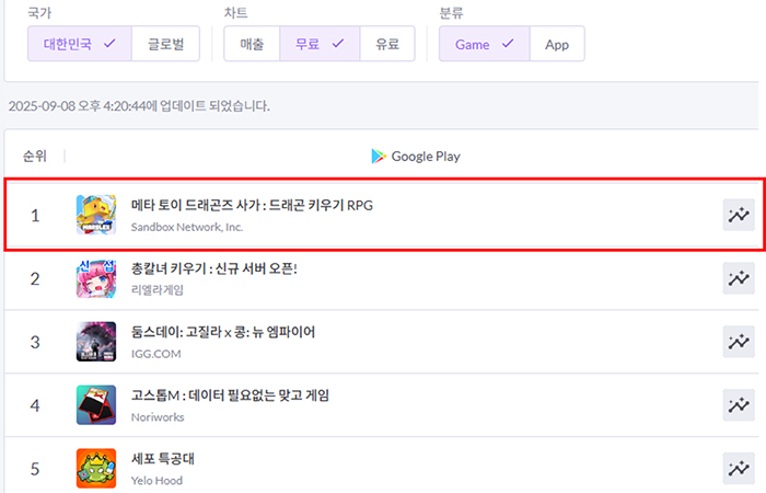 [자료제공 = 넷마블] 블록체인 전문회사 마브렉스는 웹3 퍼블리싱을 담당한 수집형 RPG ‘메타 토이 드래곤즈 사가(개발사 샌드박스네트워크)’가 구글 플레이스토어 인기 1위를 달성했다고 9일 밝혔다.