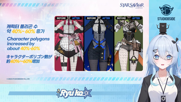캐릭터 모델링의 경우 캐릭터에 따라 폴리곤 수가 약 40~60% 증가됐다. 이러한 변경 사항은 이후 출시되는 캐릭터들에도 적용될 예정이다.